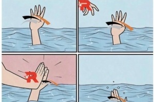 對此韓國網友制作梗圖:撈你上來?拍掌慶祝你出局