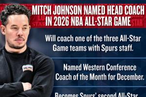 今天兩場(chǎng)比賽過(guò)后,馬刺確定西部第二席位。馬刺主帥米奇·約翰遜確認(rèn)獲得全明星主帥資格,他將執(zhí)教美國(guó)VS世界的三支球隊(duì)之一。