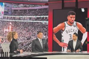 Shams曬出了自己當?shù)貢r間接近深夜12點還在做節(jié)目的照片,節(jié)目中Shams在討論的是字母哥的相關動態(tài)。