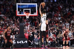 馬刺第四節一度落后13分。前三節公牛籃下24投17中。文班亞馬只手難遮天。第三節尾聲差兩分,然而科內特內切、多孫穆罰球、瓊斯和史密斯輪流穿刺,馬刺籃下被打穿。