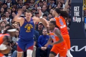 GIF-約基奇和杰林·威廉姆斯在場上對抗拉滿 甚至開始轉圈圈