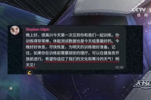 完成體測后,狼隊的運動表現副主管史蒂文(Stephen Gilpin)特意用簡體中文給徐彬發了一條暖心的私信:“晚上好,很高興今天第一次見到你和我們一起訓練。你訓練得非常棒,體能測試數據也是今天組里最好的。今晚好好休息,盡快恢復,為明天的訓練做好準備。記住,如果你在訓練前需要胡安的理療,可以在健身房開放前進行。希望你適應了我們的文化和寒冷的天氣!明天見!”