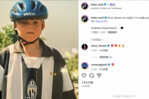體育資訊2月3日訊 霍爾姆以先租后買的形式在冬窗加盟尤文,他在加盟后更新了社交媒體,曬出了自己兒時身穿尤文球衣的照片。