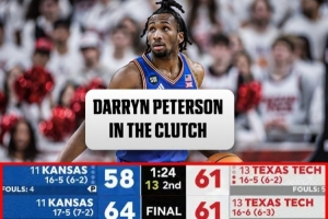 比賽最后時刻,堪薩斯大學打出一波17-4的攻擊波完成大逆轉,彼得森最后投中了兩記高難度三分,包括準絕殺的三分。