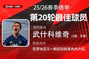 第20輪評選結(jié)果出爐,18歲熱刺外租小將武什科維奇破門,攻防兩端發(fā)揮俱佳,幫助漢堡逼平拜仁。武什科維奇當(dāng)選【體育資訊X小紅書德甲第20輪最佳球員】!