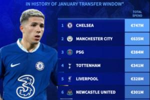 體育資訊02月03日訊 今日北京時(shí)間上午6:00,25-26賽季五大聯(lián)賽冬窗陸陸續(xù)續(xù)落下了帷幕。德轉(zhuǎn)統(tǒng)計(jì)了各支球隊(duì)自從冬窗設(shè)立以來(lái)的總支出。