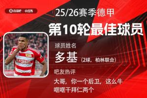 第十輪評選結(jié)果結(jié)出爐,柏林聯(lián)合中衛(wèi)多基梅開二度,幫助球隊2-2戰(zhàn)平拜仁,終結(jié)后者開局16連勝紀(jì)錄,當(dāng)選【體育資訊X小紅書德甲第10輪最佳球員】!