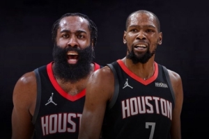 火箭媒體人Bradeaux曬出了一張哈登和杜蘭特身穿火箭球衣的P圖,說道:“我知道這非常不現實,但我就是忍不住去想。”