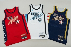 其中美國隊包含兩款球衣:一款飾有星形圖案的紅色球衣,以及一款帶有條紋元素的藍色球衣。世界隊則采用以地球圖案點綴的白色球衣。這三款由Jordan品牌特別設(shè)計的球衣,背面號碼上方均將印有球員所屬國家的國旗。這款命名為"Jordan品牌NBA全明星賽球迷版球衣"的產(chǎn)品,將于美國東部時間周三上午10點在NBA官方商店和耐克官網(wǎng)同步發(fā)售。