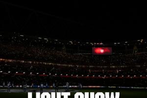 阿森納官方寫道:請盡早入座,欣賞我們的賽前燈光秀!