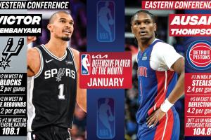 體育資訊02月04日訊 NBA官方宣布,活塞奧薩爾與馬刺文班亞馬分別當選1月東西部月最佳防守球員。