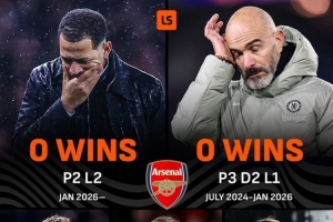 LiveScore統計表明,切爾西最近5任主教練均未能擊敗阿爾特塔的阿森納,上一位做到的切爾西主帥是圖赫爾。