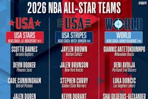 體育資訊02月04日訊 NBA官方公布2025-2026全明星分隊結(jié)果!其中詹杜庫再同隊,一眾新星組隊!世界隊9人!