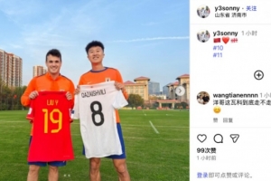 體育資訊11月11日訊 今日,泰山隊后衛劉洋更新社媒,曬出自己和隊友卡扎伊什維利相互交換國家隊球衣的合照。