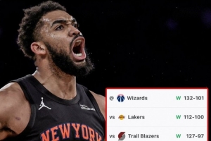 體育資訊2月4日訊 NBA常規賽,尼克斯132-101大勝奇才,豪取七連勝。