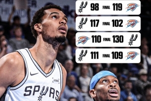 ESPN曬出了本賽季雷霆和馬刺交手紀錄(雷霆1-3馬刺),寫道:“本賽季常規(guī)賽雙方最后一次交手,雷霆將客戰(zhàn)馬刺,誰能贏?”