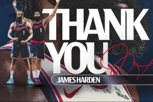 快船官方感謝哈登:“NBA歷史上最優秀的球員之一,詹姆斯(哈登),你永遠都是快船國度的一份子!”