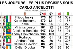 體育資訊02月05日訊 數據博主PopFoot盤點了安切洛蒂教練生涯中,他所執教球員的直接參與進球排行。其中,菲利普·因扎吉最多,本澤馬第2,卡卡第3,C羅第5。