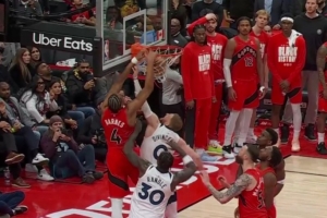 GIF-奎克利拋投涮出來,巴恩斯補扣被吹干擾球,猛龍挑戰失敗