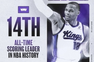 國王官推曬出海報,祝賀威少迎來里程碑。在得分榜上,威少下一個將追逐埃爾文·海耶斯(27313)。