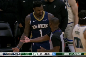 GIF-錫安關(guān)鍵一攻運球脫手后撞倒科菲再度被吹進攻犯規(guī)