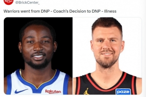 美媒BrickCenter調侃道,勇士DNP的原因從教練決定→生病。