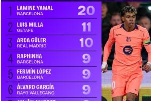 體育資訊02月05日訊 本賽季西甲截止至今,據(jù)Squawka統(tǒng)計(jì),亞馬爾在多項(xiàng)數(shù)據(jù)霸榜。