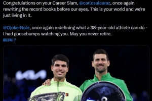 西西帕斯寫道:“恭喜你完成全滿貫,卡洛斯·阿爾卡拉斯!你再次在我們眼前改寫了歷史紀錄。這是屬于你的世界,我們只是生活在其中。”