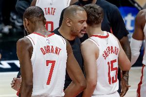 這兩場不倫不類申京阿門全廢,場上各自功能得趕緊調,申京13+9+3/7+9+5,阿門11+4+4/8+5+7,這說明系統性出問題了,靠杜蘭特一個人狂掄能掄贏誰啊?