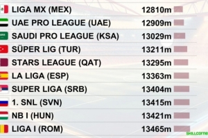 體育資訊2月6日訊 瑞士足球天文臺(CIES)統計了30個正在進行的頂級聯賽的防守數據,以非門將球員在球隊無球狀態下每90分鐘跑動距離作為依據,列出了防守投入最低的10個聯賽。
