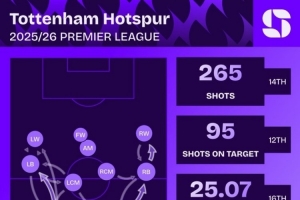 據Squawka統計,熱刺本賽季英超預期進球僅為25.07粒,但打進35球,超出預期進球9.93粒,熱刺是本賽季英超實際進球超出預期進球最多的球隊。