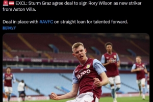 羅馬諾寫道:“獨家消息:格拉茨風暴已就簽下阿斯頓維拉前鋒羅里·威爾遜達成協議。”