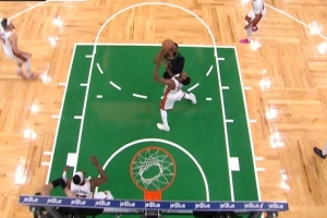 GIF-杰倫·布朗肘到維金斯打板命中被吹進攻犯規,綠軍挑戰失敗