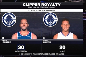 快船隊史連續20+紀錄是鮑伯·麥卡杜保持的57場
