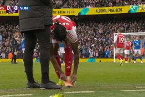體育資訊02月07日訊 英超第25輪,阿森納vs桑德蘭。比賽開場僅3分鐘,馬杜埃凱被拍到在場邊換鞋,他將左腳的一只鞋換成了另一個配色的F50。