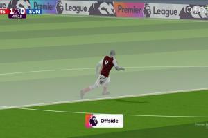 體育資訊02月07日訊 英超第25輪,阿森納vs桑德蘭。比賽第43分鐘,熱蘇斯單刀機會被放倒,主裁指向點球點之后改判越位,回放顯示熱蘇斯越了半個身位。