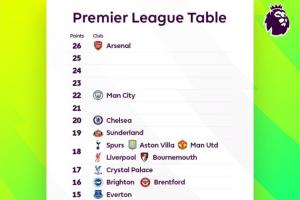 體育資訊11月12日訊 英超官方曬圖英超的“積分榜”,這份榜單以積分為序號,不以排名列出。