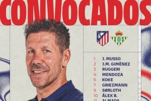 體育資訊2月8日訊 北京時間明天凌晨,馬競將在西甲第23輪比賽中主場對陣貝蒂斯,馬競公布了此役的球員名單。卡爾多索、巴里奧斯缺席,瑟爾洛特回歸。