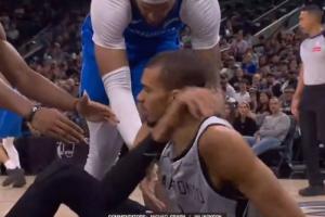 GIF-在場上就是對手!文班亞馬拒絕讓加福德拉起自己,一定要等隊友!