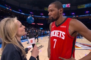 體育資訊2月8日訊 NBA常規(guī)賽,火箭在客場(chǎng)以112-106擊敗雷霆。賽后杜蘭特接受了采訪。