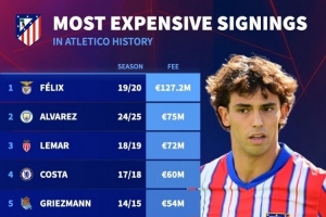 體育資訊11月12日訊 阿波羅體育資本斥資13億歐元收購(gòu)馬競(jìng)俱樂部55%股份,并承諾未來(lái)幾年再投資約13億歐元,德國(guó)轉(zhuǎn)會(huì)市場(chǎng)統(tǒng)計(jì)了馬競(jìng)隊(duì)史引援的費(fèi)用,并列出最貴引援排名。