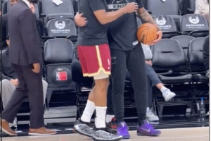 本場(chǎng)比賽是哈登的騎士生涯首秀,他賽前和2009屆的同級(jí)生德羅贊耳語寒暄。