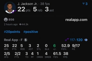 本場比賽,爵士新援小賈倫·杰克遜首秀表現不錯,出場25分鐘17投9中,三分5中2、罰球2中2拿到22分5籃板3助攻2搶斷,正負值+6。