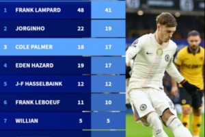 體育資訊2月8日訊 在本輪英超切爾西3-1擊敗狼隊的比賽中,帕爾默點射雙響,德轉(zhuǎn)也盤點了切爾西球員在英超點球進(jìn)球榜,帕爾默第三,具體如下: