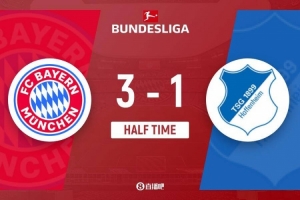 體育資訊2月9日訊 北京時間2月9日0點30分,德甲第21輪,拜仁慕尼黑在主場安聯競技場對陣霍芬海姆。上半場,迪亞斯造點,阿克波古馬染紅,凱恩點射破門,阿斯拉尼頭球中框,諾伊爾失誤送禮,克拉馬里奇版平板比分,半場結束前迪亞斯再度造點,凱恩點射雙響,迪亞斯補時自己打進一球。上半場拜仁慕尼黑3-1霍芬海姆。