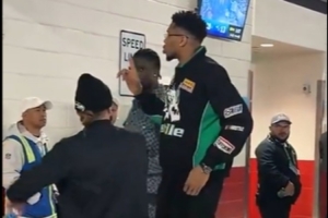 今天,雄鹿球星字母哥現(xiàn)身觀戰(zhàn),賽后他和球迷們一起走路離開。