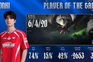 體育資訊2月9日訊 在剛剛結(jié)束的WE對陣TES的對局中,Monki使用蝎子打出6/4/20戰(zhàn)績,斬獲WE對陣TES第一局MVP。