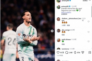 安東尼社媒曬出慶祝的照片,配文:“在客場取得漂亮勝利,繼續加油!”