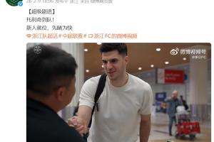 體育資訊02月09日訊 浙江官方曬托利奇到隊視頻。正如體育資訊此前報道,浙江新援托利奇已到迪拜歸隊。