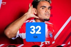 根據統計,迪亞斯本賽季至今代表拜仁出場30次,打進18球助攻14次,直接參與進球32個。
